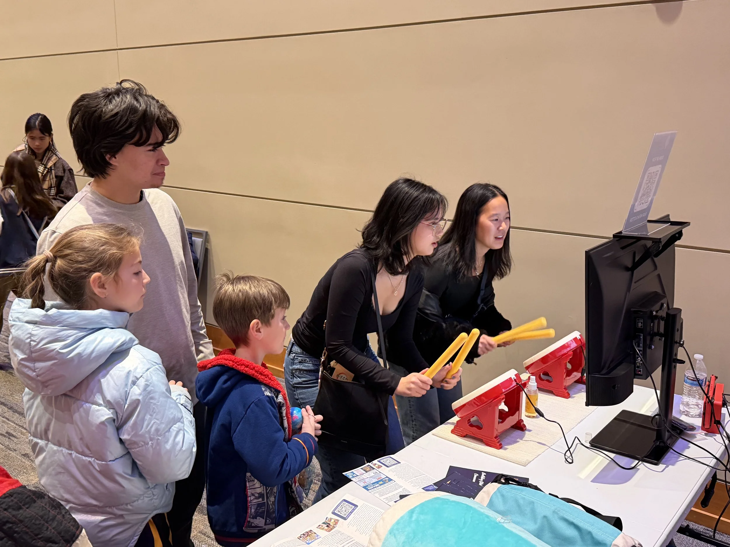 Taiko no Tatsujin, an interactive drum video game that simulates playing a Japanese taiko drum at a festival. It’s always a favorite activity for families and young festival‑goers!