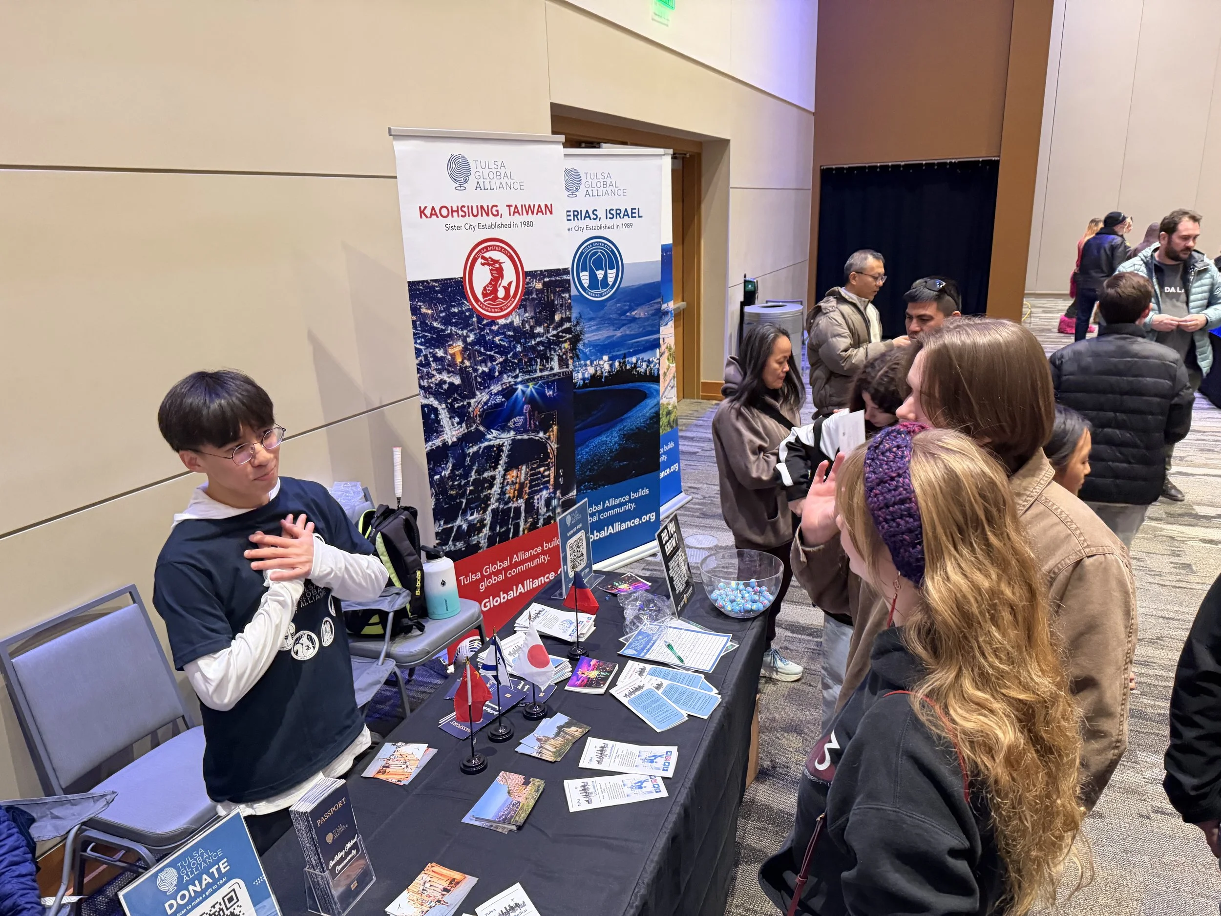 At the TGA booth, guests were invited to learn more about four of Tulsa’s Sister Cities in Asia: Tiberias, Israel; Utsunomiya, Japan; Beihai China; and Kaohsiung, Taiwan. Each city reflects a unique cultural heritage and a long-standing commitment to international friendship. Throughout the day, our booth served as a welcoming hub for conversation and discovery.